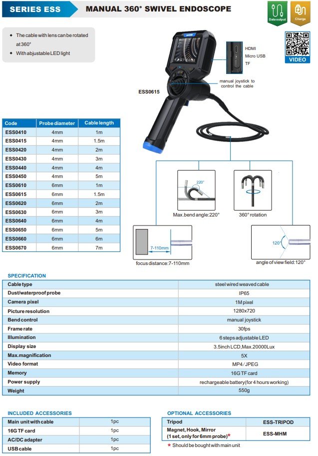 ACCUD ESS0420 MANUAL 360° SWIVEL VIDEOSCOPES 4mm/2m