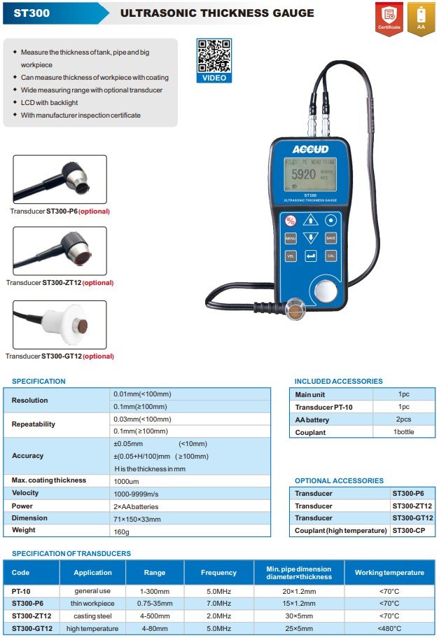The ultrasonic transducer ST300-ZT12 is designed for measuring the thickness of coated workpieces and provides accurate results without the need to remove the coating.