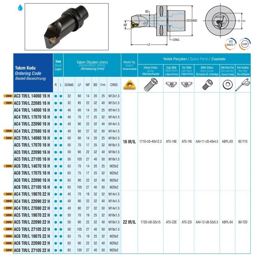 | Typ břitové destičky ISO soustružení | Pro VBD typu 16IR - vnitřní závit pravý |