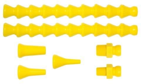 Praktická sada systému LOC-LINE ve velikosti 1/4", určená pro práci s agresivními kapalinami. Barva žlutá, obsahuje všechny potřebné díly pro sestavení hadic a trysek.