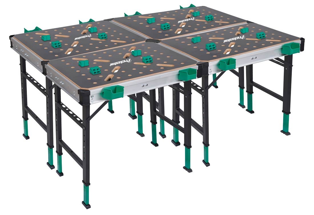- Univerzální využití jako pracovní stůl, montážní stůl i základna pro polostacionární stroje s mnoha upevňovacími body.