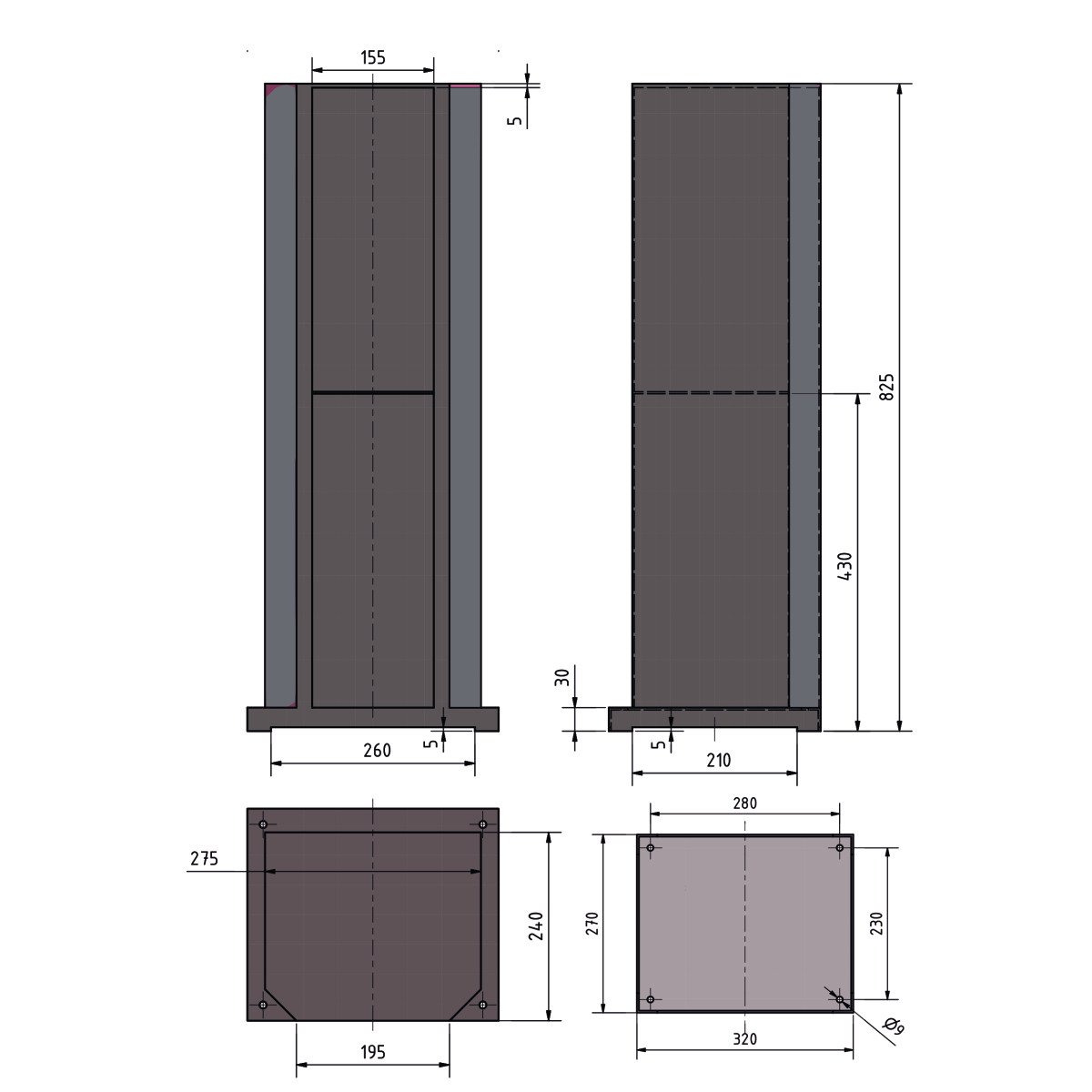Rozměry (š × v × h) 270×825×320 mm