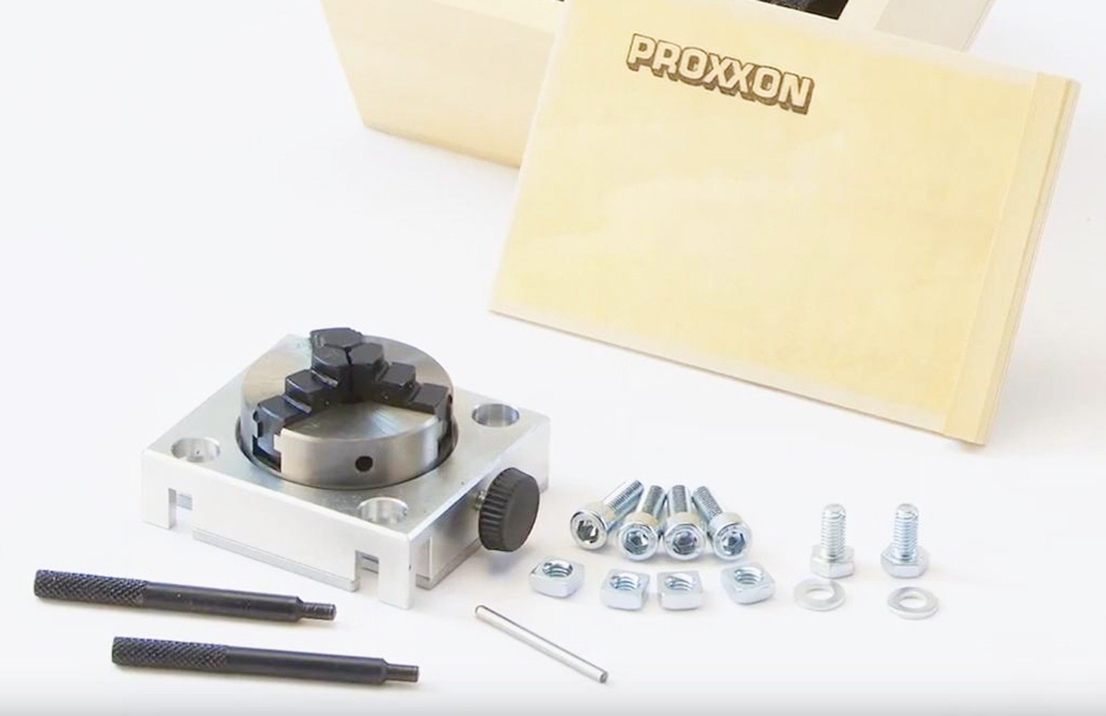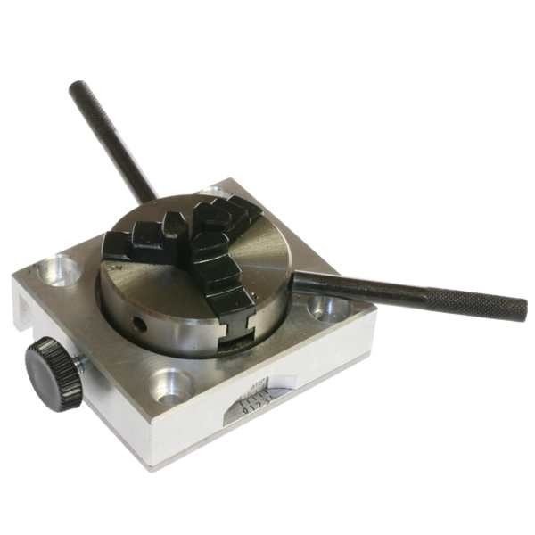 MICRO dělící zařízení umožňuje rovnoměrné opracování kruhových obrobků, například při výrobě ozubených kol, čtyřhranů a vícehranů. Přesné dělení stupňů zajišťuje nonius umístěný na základně. Otáčením kruhové základny se čelisti sklíčidla utahují nebo povolují.
