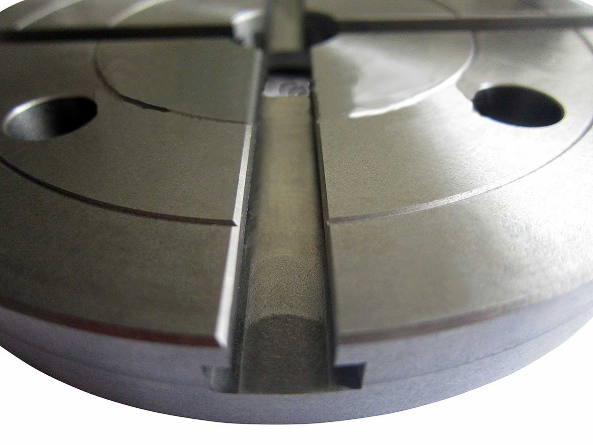 Deska je vybavena dvěma průběžnými T-drážkami, které umožňují vložení kamenů a pevné upnutí obrobku pomocí šroubů a upínacích podložek. Tím je zajištěno stabilní a bezpečné uchycení při obrábění.