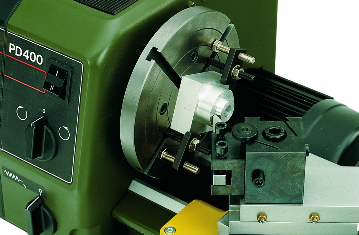 Lícní deska slouží jako alternativa ke sklíčidlu v případech, kdy je potřeba upnout větší nebo nepravidelně tvarovaný obrobek. Deska má průměr 125 mm a připevňuje se na vřeteno soustruhu PD 400 pomocí čtyř imbusových šroubů.