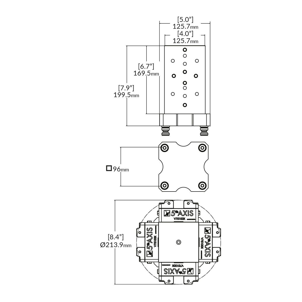 Tento čtyřstranný tombstone je určen pro upnutí až 8× svěráků V75100X. Tombstone je kompatibilní se systémem RockLock™ a může být namontován na jakoukoli základnu RockLock™ 96 mm. Na spodní straně tombstone je standardní rozteč 96 mm a součástí balení jsou 4× upínací čepy PS20F.