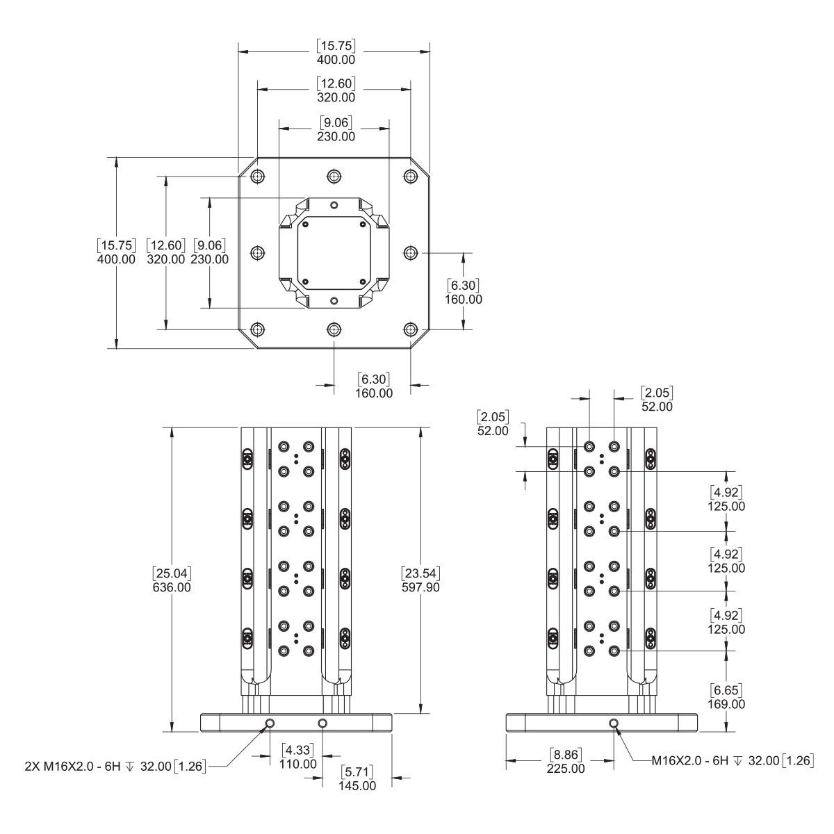 Tento horizontální modulární tombstone umožňuje zpracovat více obrobků během jednoho výrobního cyklu, čímž se snižuje počet zbytečných výměn nástrojů a rychlých pohybů stroje. Minimalizace manipulace s obrobky zvyšuje efektivitu a přesnost výroby, zatímco modulární design tombstonu zkracuje časy nastavení a výměny přípravků, čímž celý obráběcí proces činí rychlejší, plynulejší a produktivnější.