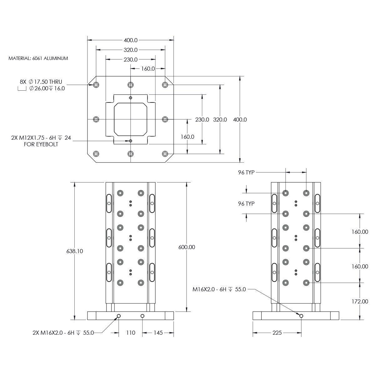 RL96A-4004U Upínací věž RockLock™ 96 mm, 400 × 400 × 638 mm