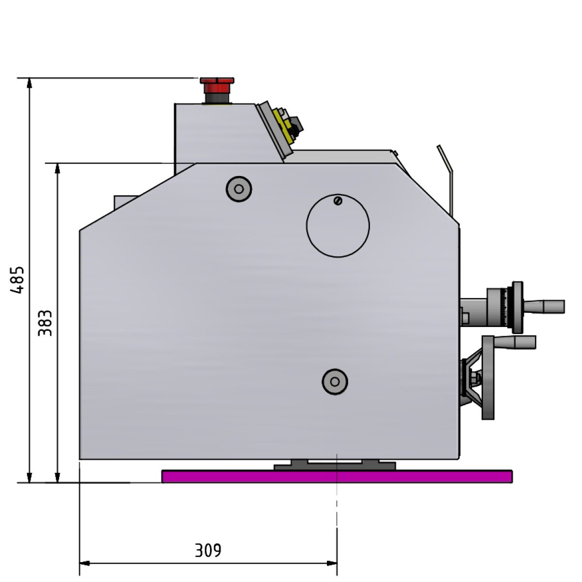 - Hlavní vypínač (IP 54) s podpěťovým spouštěčem, nouzový vypínač s aretací